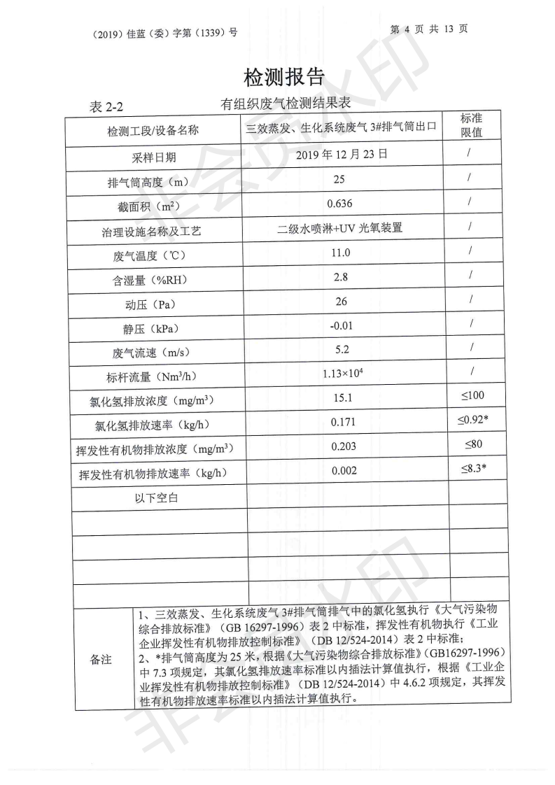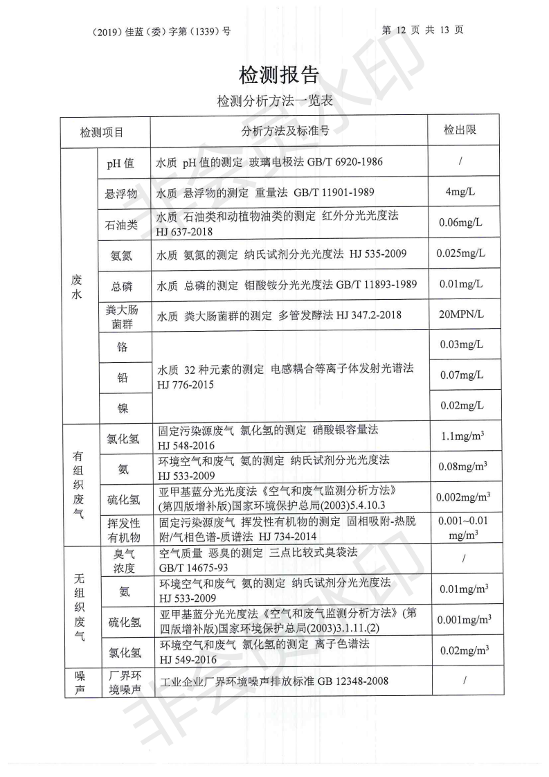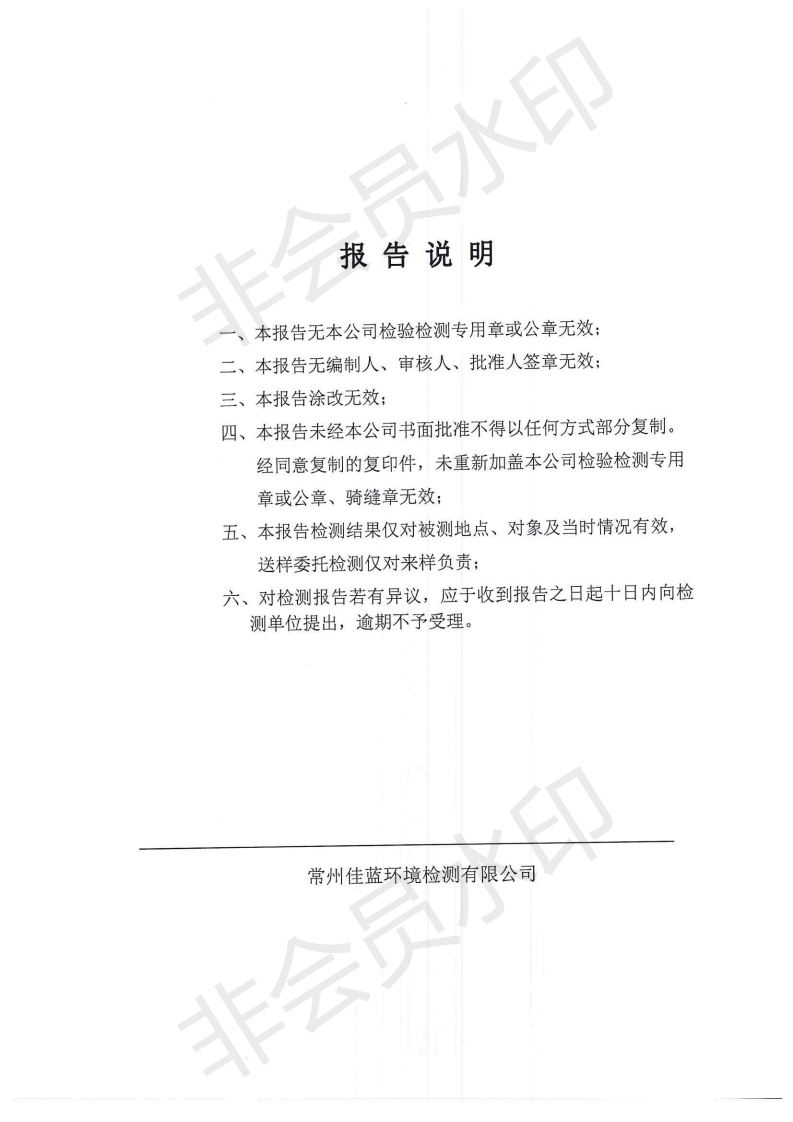 2019年12月我司委托常州佳藍環境檢測有限公司對本司廠區范圍內的廢水、有組織廢氣、無組廢氣、噪聲等進行檢測并提供檢測數據,檢測時,本司正常生產運行。以下為常州佳藍環境檢測有限公司提供檢測報告。
